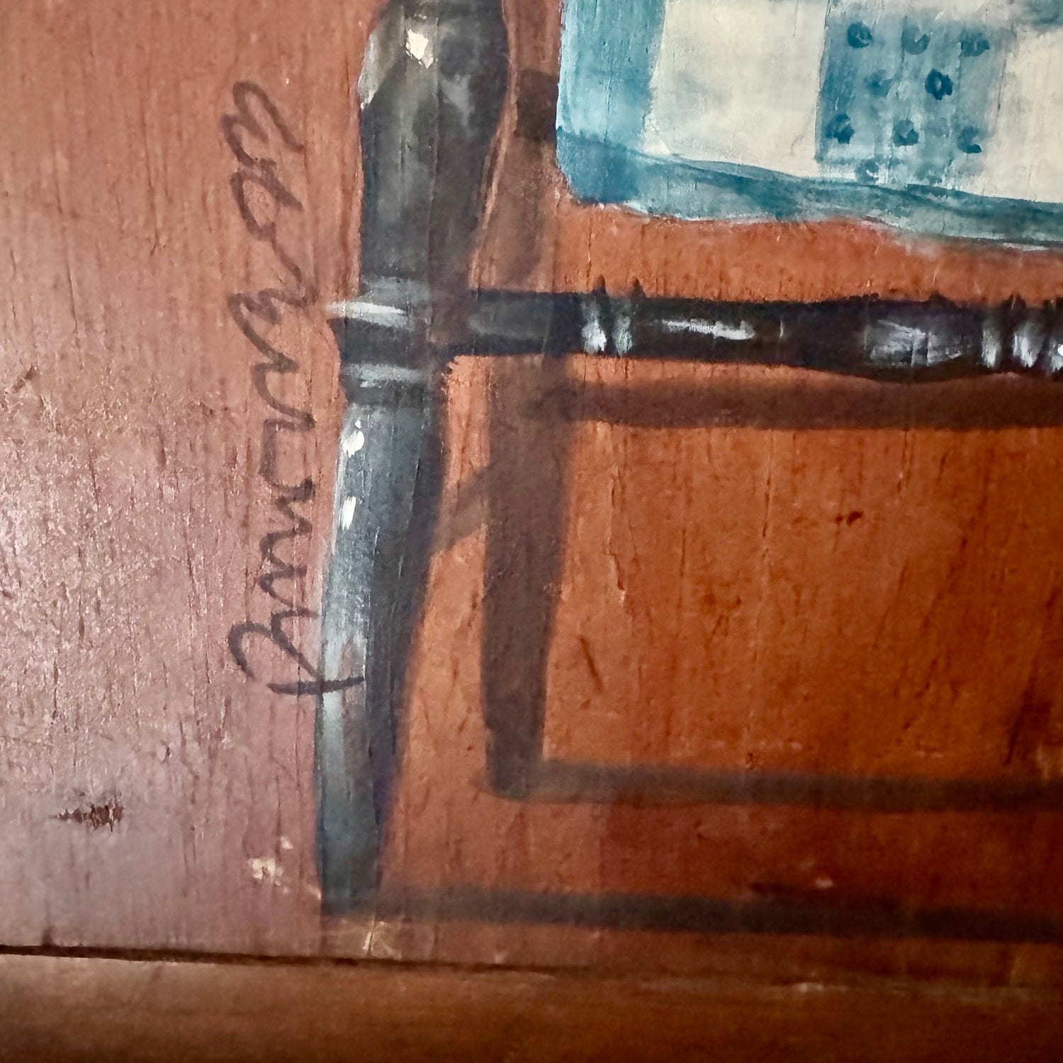 This amazing vintage board has wide mitered sides (as if it was framed) is signed and dated and measures approximately 27 inches high and 18 1/2 inches wide.