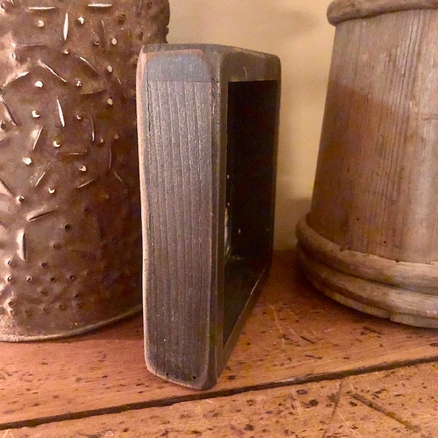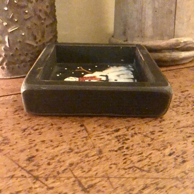 This new wood, framed square is painted black and distressed to look old. Signed and dated by Ann Sweeney, it measures approximately 6 inches square with a 1 inch deep frame. It will stand on its own or you can add a hook for hanging.
